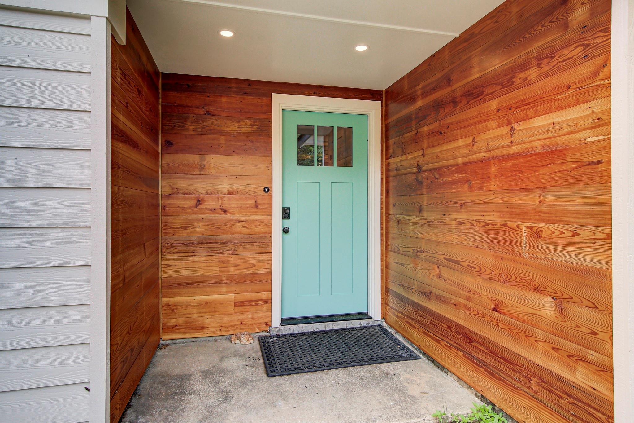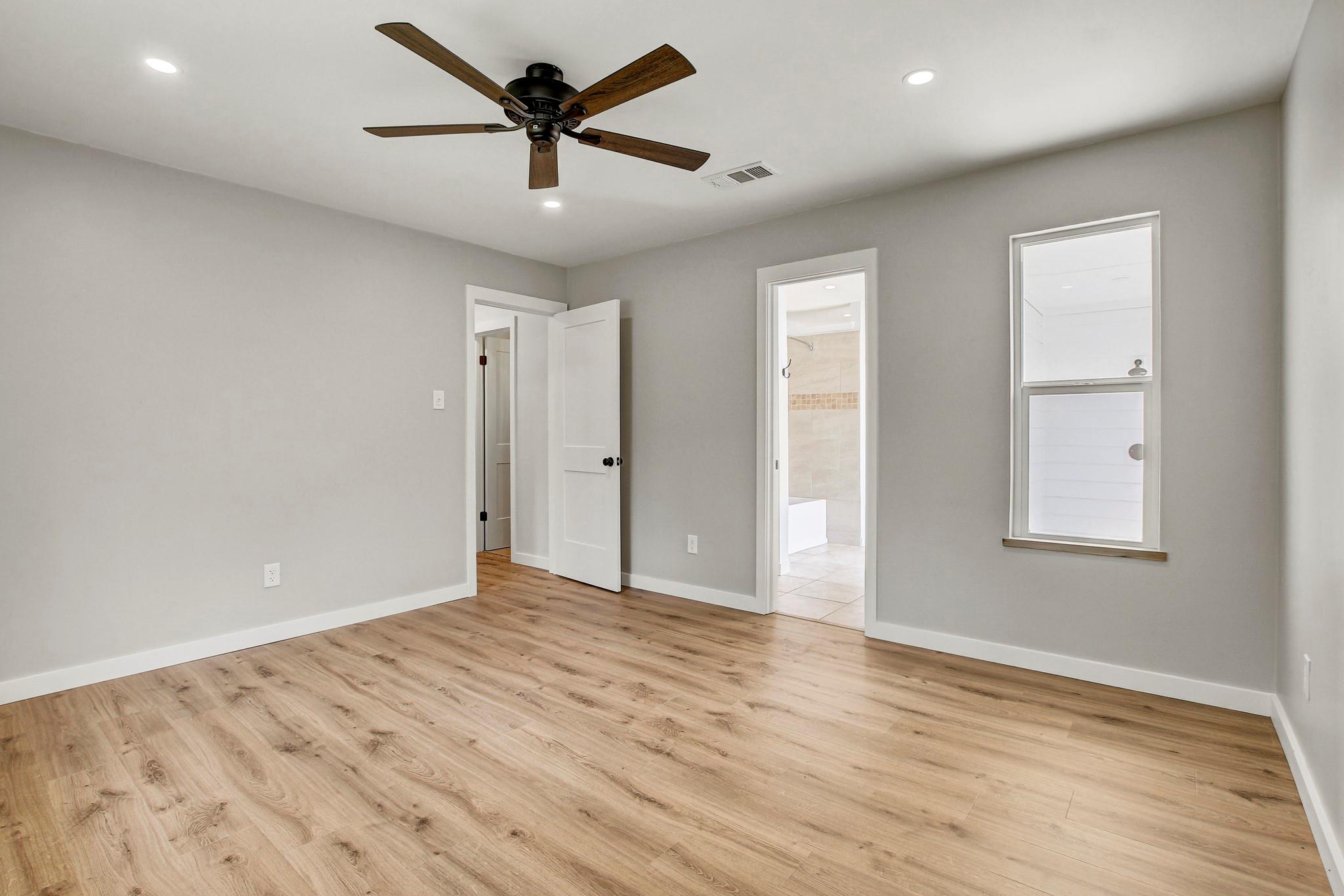 Step inside to find freshly updated interiors with new flooring, modern lighting, and a bright, clean feel throughout. A touch of bohemian style adds warmth and character. The kitchen features stainless steel appliances and durable porcelain tile flooring, while the primary suite offers a refreshed bathroom and direct access to a private outdoor shower—perfect for enjoying warm Austin days.